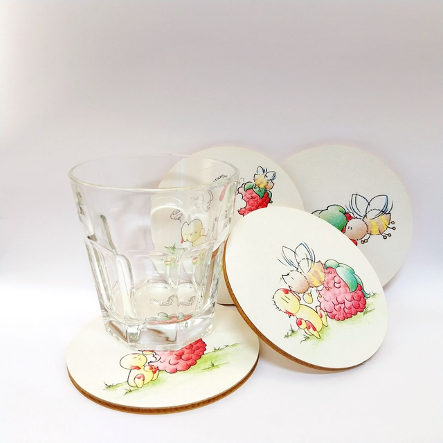 Untersetzer-Set "Himbeere" und Untersetzer-Set "Stachelbeere", Durchmesser ~10,0cm